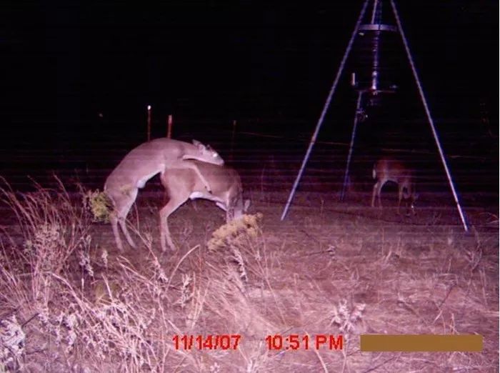 这个视频,2007年拍摄于伊利诺伊州,展示了鹿和奇怪的物体在镜头前移动。动物似乎被身份不明的东西吓了一跳。