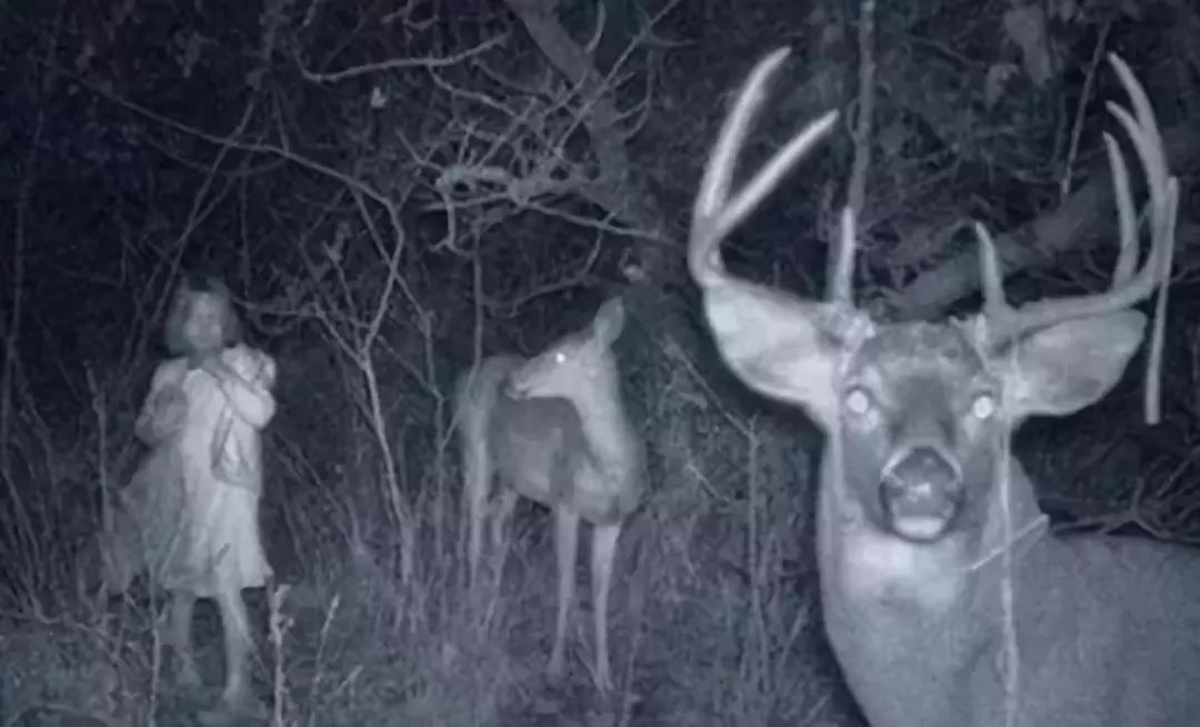 这2张照片是马里兰拍摄的,你可以看见半空中照射鹿的光源。