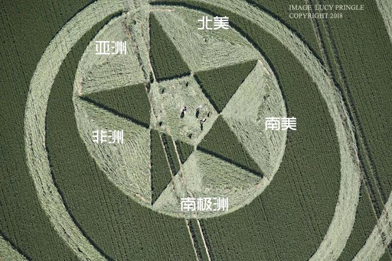 解读:这个麦田怪圈,就在上次6月9日的麦田怪圈边上出现。应该是一系列,并继续阐述。