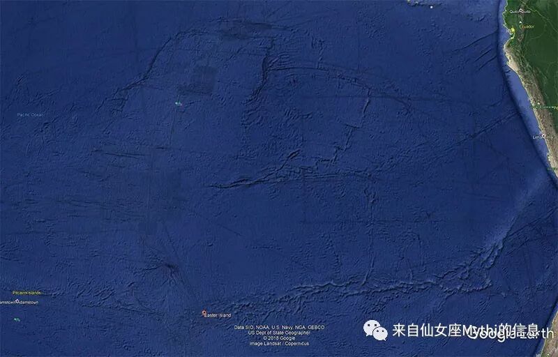 在这张照片中,复活节岛北部的水域中有一个黑暗的区域。 这是 Lemuria 的确切位置,或者它的大城市吗?在下面可以找到什么样的建筑物(如果有)? 那里生活着什么种族的人,他们现在在哪里?